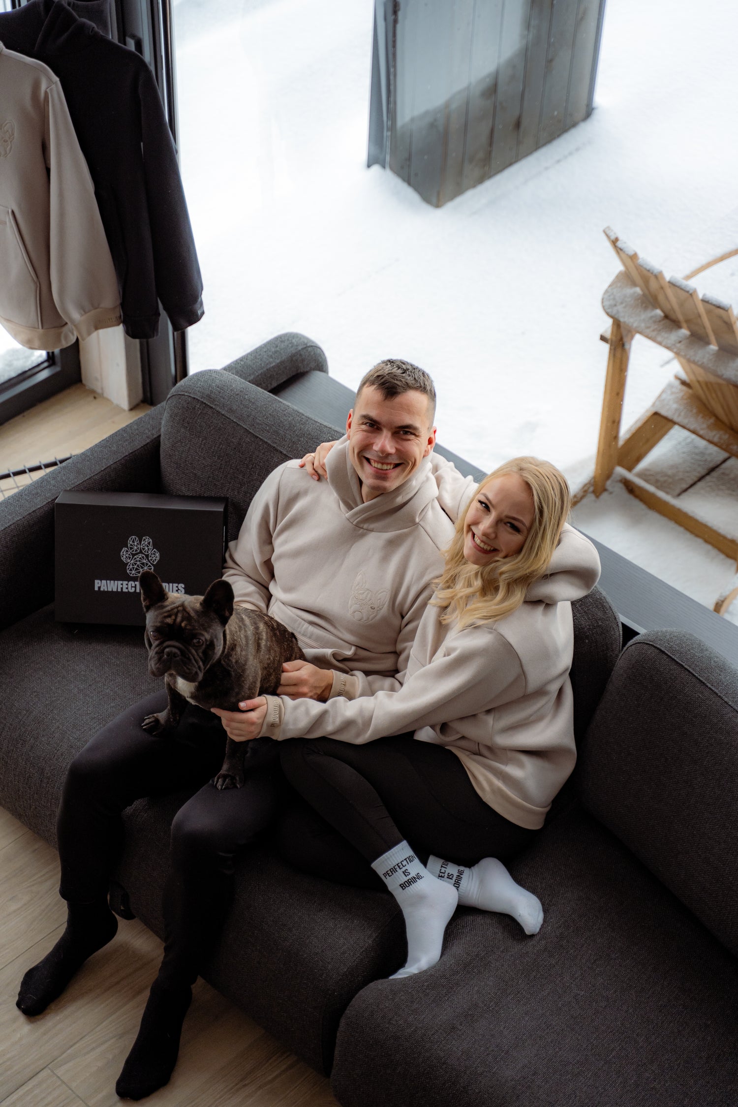 PAWFECTHOODIES (PAW-FECT) jeb perfekti hūdiji ir dzimuši no mīlestības pret ērtībām, aktīvu dzīvesveidu un, protams, mūsu mīļo franču buldogu Kivi. Jautāsiet, kāpēc tieši Kivi? Vai nav pazīstama sajūta, kad ar prieku skrienat un lecat kopā ar savu suni, spēlējaties un dauzāties pa zāli, pļavu vai mājas pagalmu, un pēkšņi – ups! Kur ir telefons, atslēgas? Jā, mēs to lieliski saprotam! Tāpēc, pēc vairāku prototipu un rūpīgas izstrādes, esam radījuši PAWFECTHOODIES – unikālus unisex džemperus ar divām kabatām, no kurām viena ir aprīkota ar rāvējslēdzēju, lai Jūsu mantas vienmēr būtu drošībā. Nav vairs jāuztraucas par izkritušām atslēgām, telefonu vai citām svarīgām lietām!